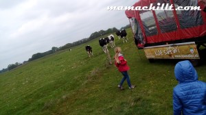 Auf dem Programm stand eine Kuh-Safari. Simone Koggel vom Bauernhof Vechtalhoeve nahm uns mit in ihrem großen roten Planwagen. Es ging ab über die Kuhweide, ganz dicht ran an Kälbchen, Kühe und Stier. Simone hat früher als Tierarzthelferin gearbeitet und bietet jetzt die Kuh-Safari für Touristen aber auch Businessleute an. Sie weiß alles über ihre brandroten Kühe und hat uns mit ihrer Begeisterung richtig angesteckt. Wir wussten zum Beispiel vorher nicht, dass jede Kuhherde eine Königin hat und dass sich am Horn einer Kuh ablesen lässt, wie oft diese schon schwanger war. Mein Sohn und alle anderen Kindern durften gemeinsam mit Simone vorne sitzen und den Hanomag steuern – eines der großen Highlights dieses Tages!