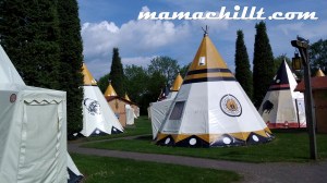 Sohn und Mann haben in der Zeit die Geräte für Kinder ausprobiert und auch da gibt es in Slagharen sehr viel zu entdecken. Der Park hat sich auf Familien mit 4- bis 14-jährigen Kindern spezialisiert, ist also ein richtiger Familienpark. Mein Sohn fand das 4-D Kino toll, die Holzachterbahn und das Propeller-Hubschrauber-Fahrgeschäft für Kinder. Ich fand noch die Wigwams beeindruckend, in denen Gäste hier übernachten können. Sie sind sehr schick eingerichtet, mit Spülmaschine und Flat-TV – und trotzdem ein super Abenteuer für die Familie. Der Park baut gerade an neuen Ferienhäusern auf dem Gelände, die Raccoon-Lodges werden Anfang Juni eröffnet.