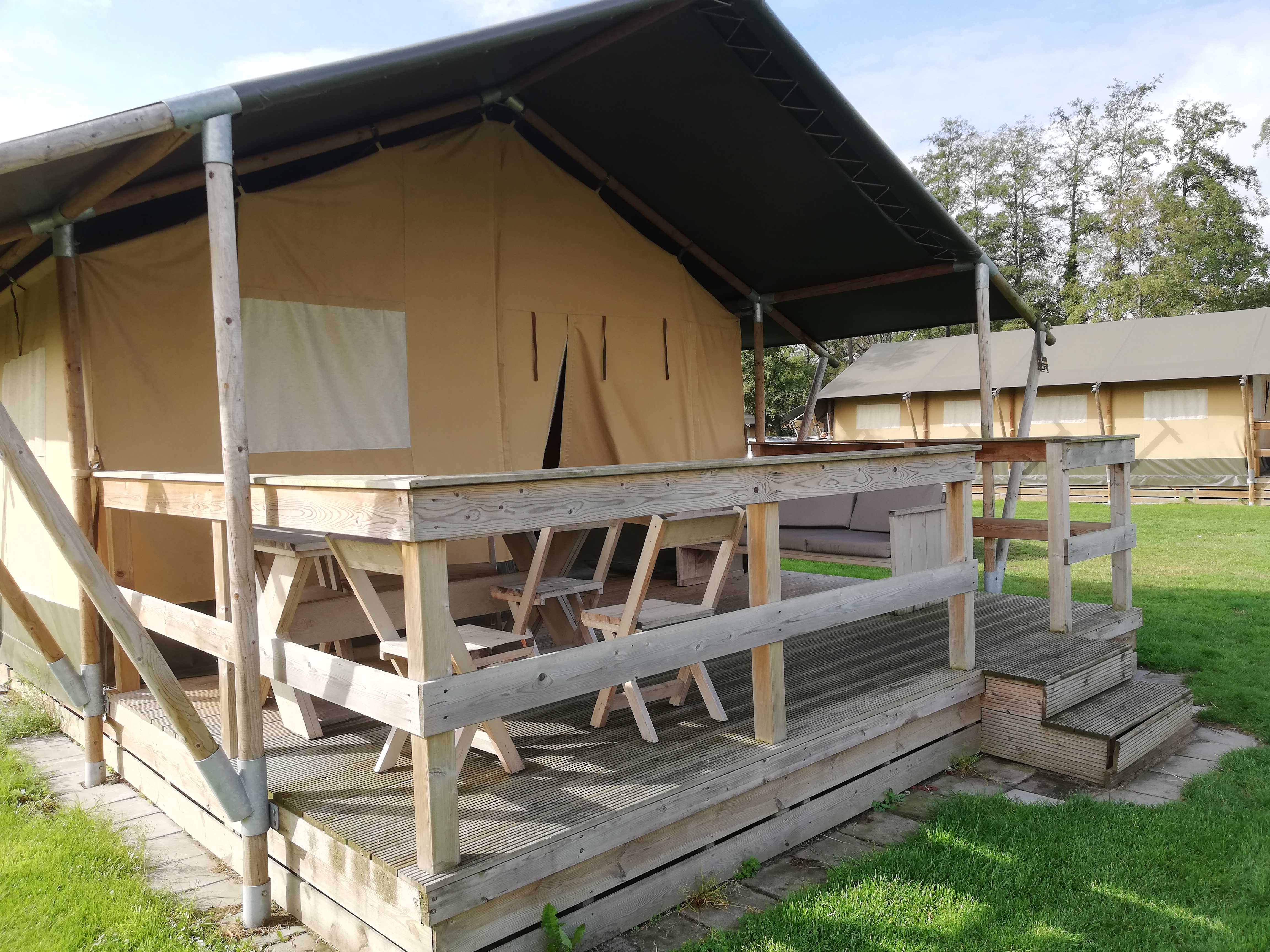 In der Achterhoek gibt es viele Campingplätze und Übernachtungsmöglichkeiten für Familien. Wir haben diesmal auf dem Platz „De twee Bruggen“ übernachtet, und zwar in einem großen Safari-Lodge-Zelt. Das große Zelt ist für 6 Personen ausgerichtet und hat auch eine Dusche, Heizung und WC. Für Kinder besonders toll: Die gemütliche Schlafkoje aus Holz. De twee Bruggen ist ein hochwertiger Vakantiepark, also ein Ferienpark der sehr gut ausgestattet ist. Mit Innen- und Außenpool samt 4 Rutschen, Restaurant, Bowlingbahn und Supermarkt. Meinem Sohn hat vor allem der Spielplatz direkt am Zelt gefallen und der Fluss hinter der Weide.